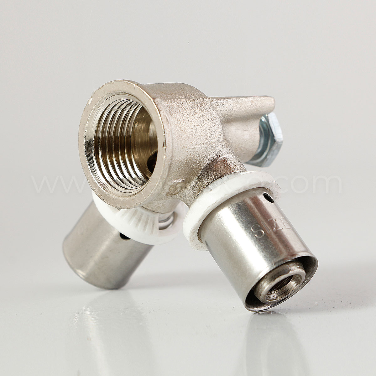 سه راه دیواری پرسی پنج لایه که از جنس برنج و روکش از آلیاژهای کروم دارد بیشترین موارد کاربرد این اتصال جهت نصب شیر آلات در بین مسیر لوله کشی 5 لایه می باشد.